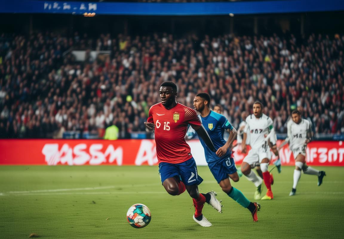 赛场上的中国队,身着鲜艳的红色战袍,如同火焰般燃烧着激情。队长身先士卒,带领着球队冲锋陷阵。中场核心凭借出色的控球和传球,串联起整个进攻线。前锋线上的球员,身手矫健,速度如风,一次次冲击着对方防线。